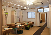 テーピング療法(キネシオ・ホワイト)/フットビューティー(下半身血液循環促進機)/ウォーターベッド/超音波療法(低周波コンビネーション)/電療法(干渉波・骨~軟部組織に対応できるサラウンド3D通電機能搭載型)/温熱療法(ます温灸・ホットパック等)