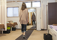 もっとも重要で大切な検査です。実際に患者様に歩いていただき、歩き方のクセだけでなく全体のバランス、足の出し方、左右のヒザの向きなどを診ていきます。歩行中の患者様をビデオカメラで撮影し、実際に見ていただき、改善点などを次回に確認できるよう保存し、経過観察をさせていただきます。